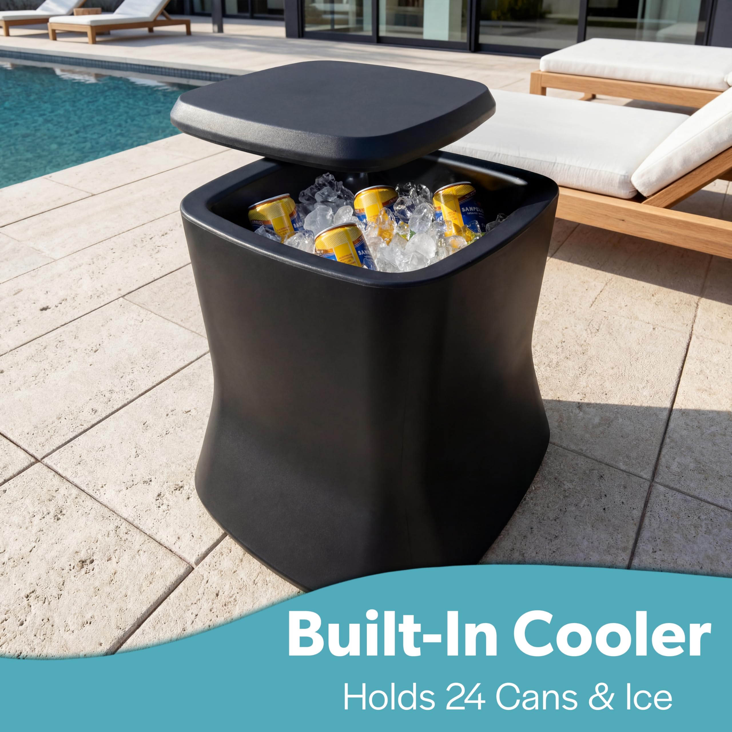 - ELEVATE OUTDOOR SPACES: High-end and versatile, this cooler side table can be used on your patio or in pool baja shelves up to 6 inches deep; Elegant tabletop and discreet ice chest makes entertaining friends and family effortless