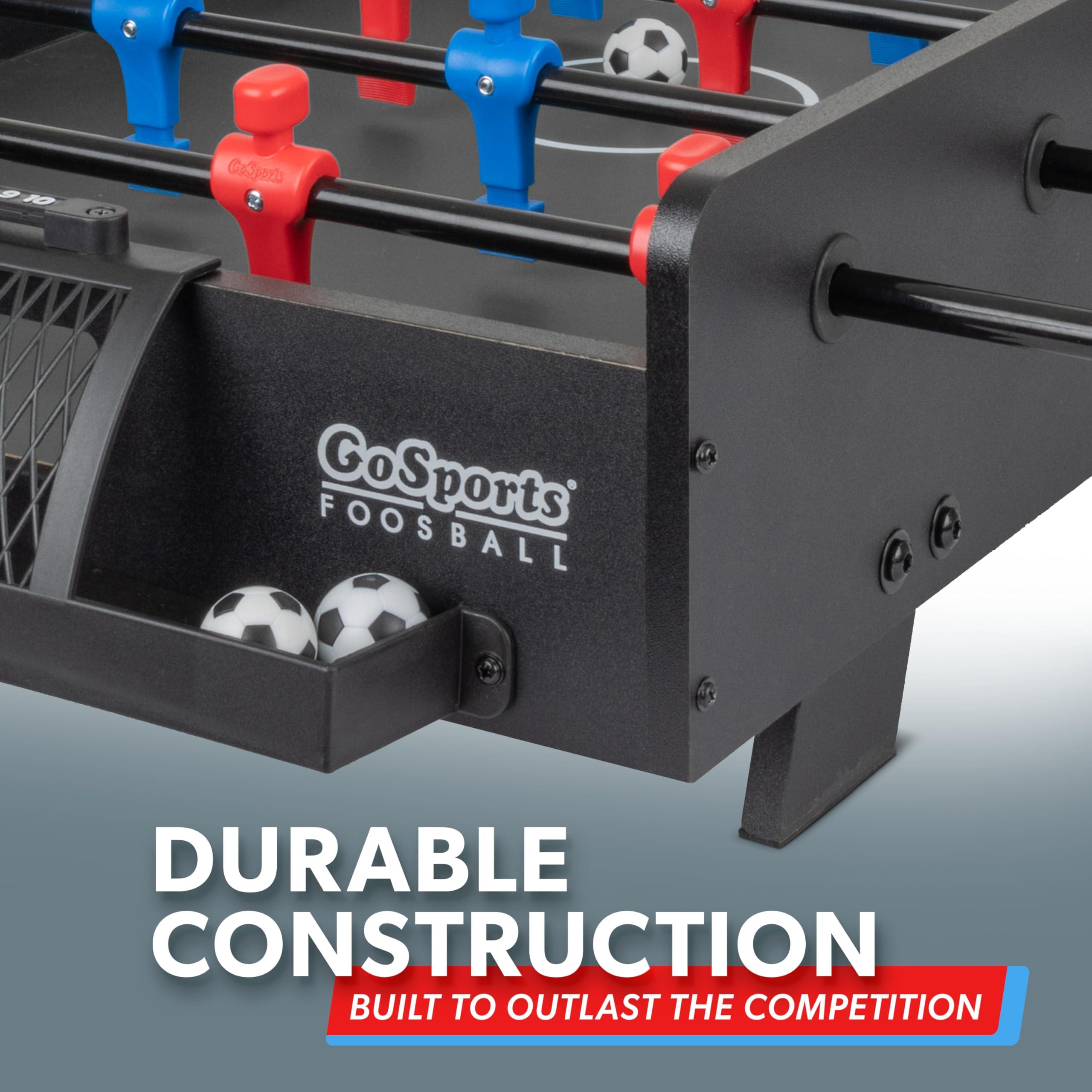 - TABLETOP FOOSBALL FUN: Premium 32 inch foosball table is great for kids and adults; Accommodates 2-4 players and includes 2 mini soccer foosballs; Full size measures 32 in x 20 in x 6 in