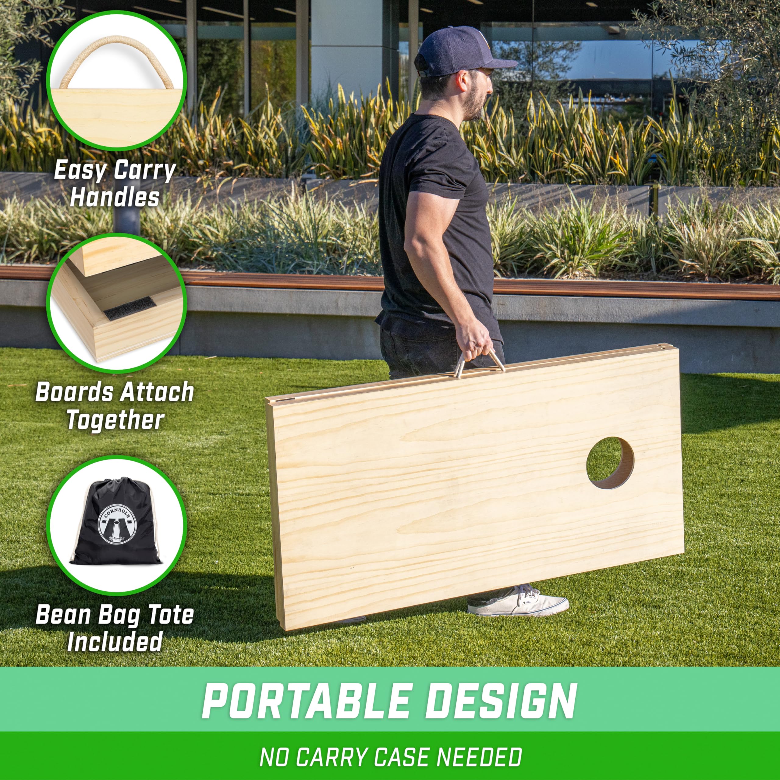 GoSports 4 x 2 ft Classic Wooden Cornhole Board Set - Portable Bean Bag Toss Game for Adults & Family - Includes Set of 8 Bean Bags with Tote Bag