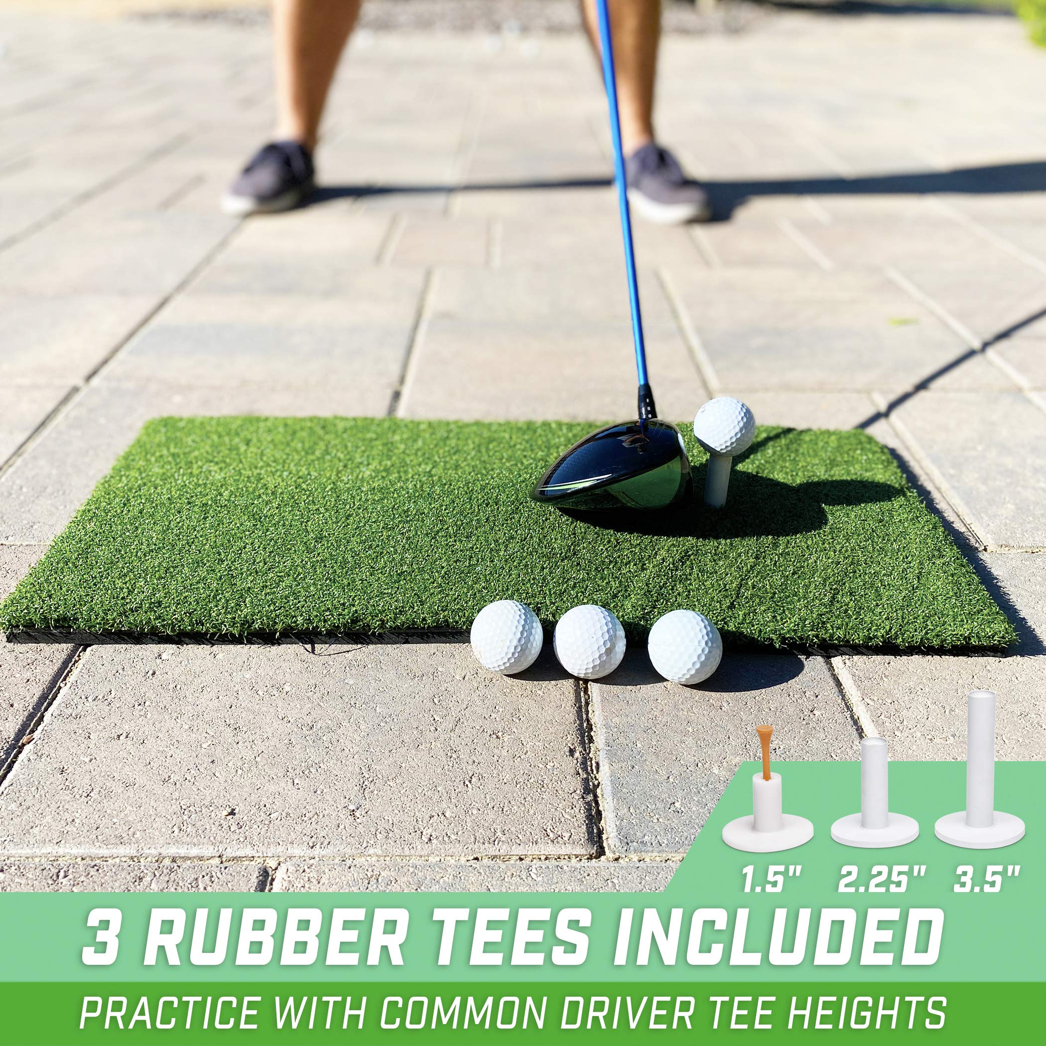 - 3 RUBBER TEES: 1.5 in tee allows use of a wood tee at any height, and 2.25 in and 3.5 in tees provide options for common driver tee heights