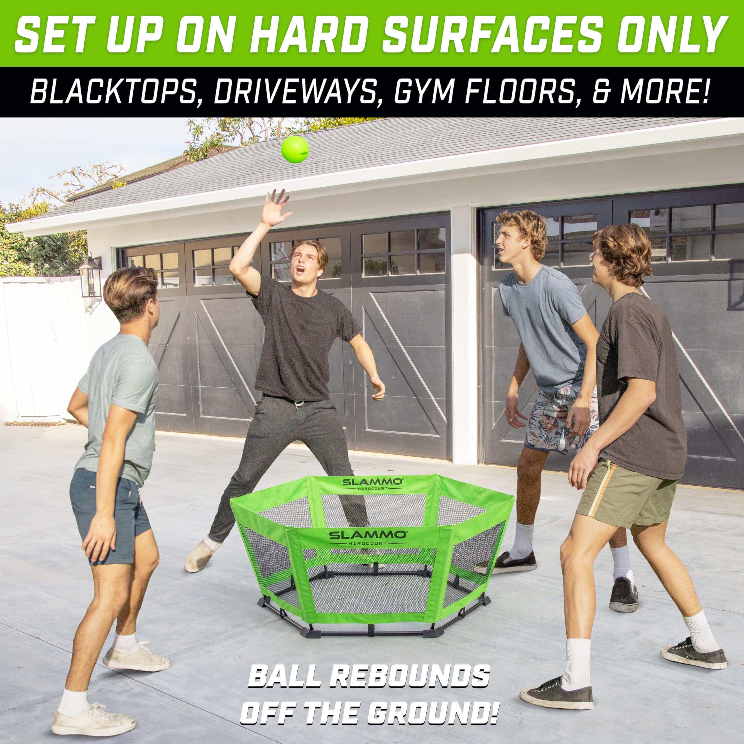 - EASY TO PLAY: Slammo Rally Hardcourt is an action-packed 2-on-2 volleyball style game where teams have 3 hits to return or spike the ball to the center; Optionally use pickleball paddles to hit the ball for a fun alternative way to play
